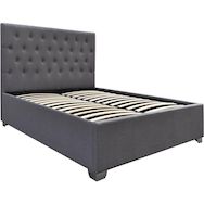 Lit double avec coffre TINO - Dimensions du lit : 217 x 168 x 108 cm - Dimensions du matelas : 160 × 200 cm - Gris - Structure : cadre en bois (contreplaqué et bois dur) - Tête de lit et pied de lit en tissu - Avec sommier à lattes en peuplier (bois courbé) - Matelas non inclus.Lit Tino Le lit