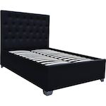 Lit double avec coffre TINO - Dimensions du lit : 217 x 168 x 108 cm - Dimensions du matelas : 160 × 200 cm - Noir - Structure : cadre en bois (contreplaqué et bois dur) - Tête de lit et pied de lit en PVC inclus - Avec sommier à lattes en peuplier (bois courbé) - Matelas non inclus.Lit Tino Le l