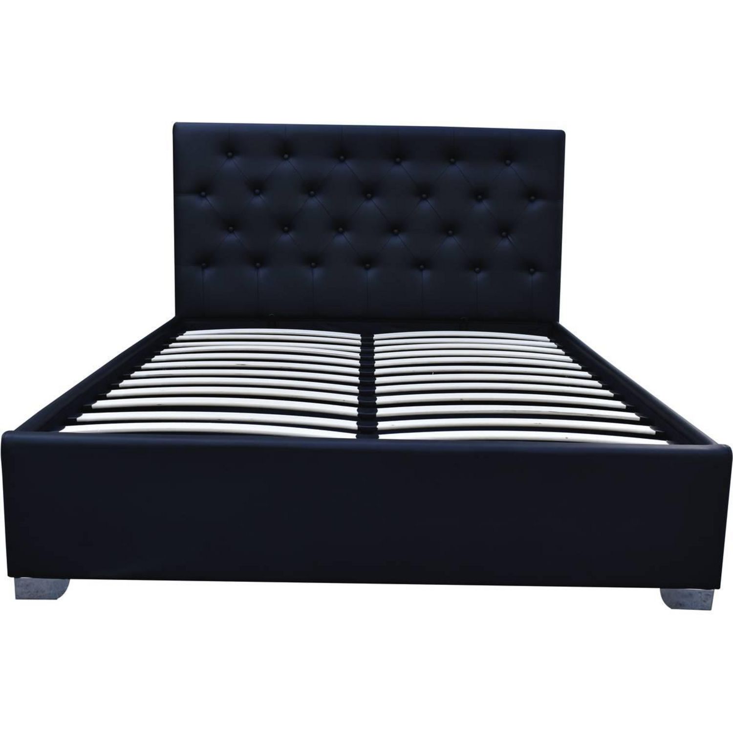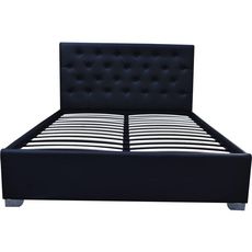 Lit double avec coffre TINO - Dimensions du lit : 217 x 188 x 108 cm - Dimensions du matelas : 180 × 200 cm - Noir - Structure : cadre en bois (contreplaqué et bois dur) - Tête de lit et pied de lit en PVC inclus - Avec sommier à lattes en peuplier (bois courbé) - Matelas non inclus.Lit Tino Le