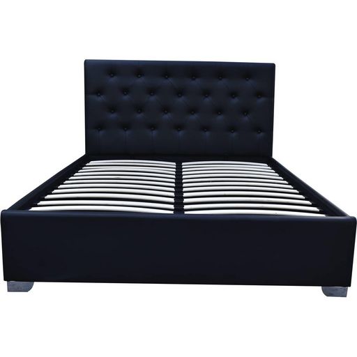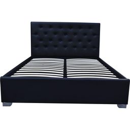 Lit double avec coffre TINO - Dimensions du lit : 217 x 188 x 108 cm - Dimensions du matelas : 180 × 200 cm - Noir - Structure : cadre en bois (contreplaqué et bois dur) - Tête de lit et pied de lit en PVC inclus - Avec sommier à lattes en peuplier (bois courbé) - Matelas non inclus.