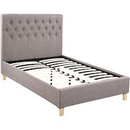 Lit Emmy 2 personnes - Taupe - Dimensions lit : 147 x 209 x 102 cm - Dimensions pour matelas : 140 x 190 cm - Structure en bois - Pieds en bois - 100% polyester - Sommier à lattes et tête de lit inclus.