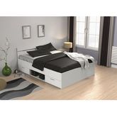 Lit Double Michigan - Dimensions du couchage: 140 x 200 cm - Dimensions du lit: 204 x 145 x 74 cm - 2 places - Matière: Bois - Couleur: Blanc - 2 tiroirs - 1 niche.