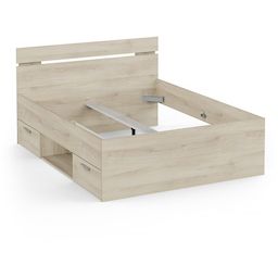 Lit Double Michigan - Dimensions du couchage: 160 x 200 cm - Dimensions du lit: 204 x 165 x 74 cm - 2 places - Matière: Bois - Couleur: Marron - 2 tiroirs - 1 niche.