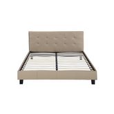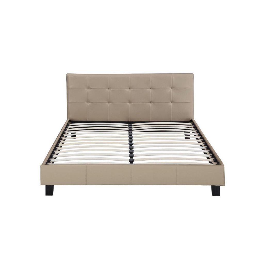 Lit adulte double Julia 2 personnes - Taupe - Dimensions lit : 203 x 148 x 90 cm - Dimensions matelas : 140 x 190 cm - Tête de lit capitonnée - Sommier inclus - Finition matte - En PVC.