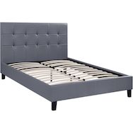 Lit adulte simple Julia 2 personnes - Gris clair - Dimensions lit : 217 x 167 x 89.5 cm - Dimensions matelas : 160 x 200 cm - Tête de lit capitonnée - Sommier inclus - Finition matte - En PVC.