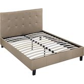 Lit adulte double Julia 2 personnes - Taupe - Dimensions lit : 217 x 167 x 89.5 cm - Dimensions matelas : 160 x 200 cm - Tête de lit capitonnée - Sommier inclus - Finition matte - En PVC.