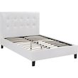 Lit adulte double Julia 2 personnes - Blanc - Dimensions lit : 214 x 187 x 89 cm - Dimensions matelas : 180 x 200 cm - Tête de lit capitonnée - Sommier inclus - Finition brillante - En PVC.