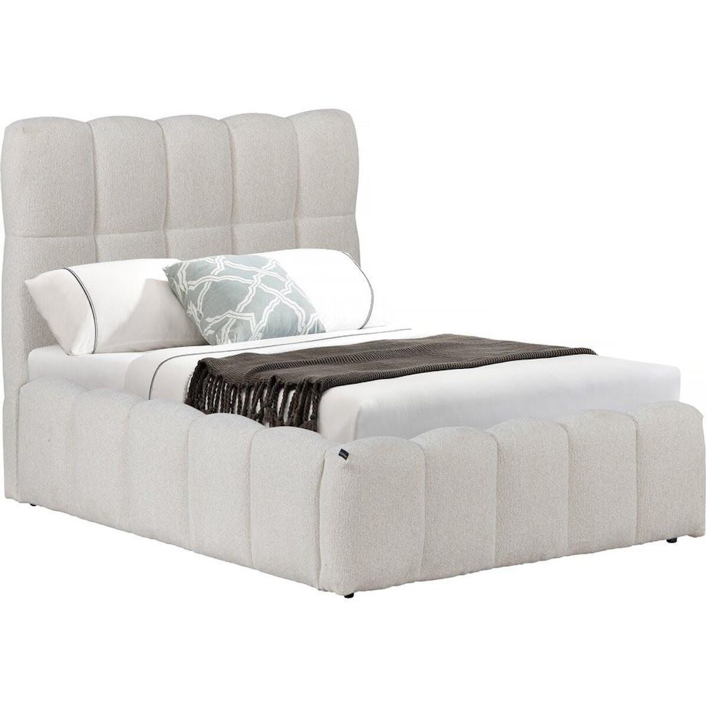 Lit double en tissu avec coffre Davos - 140 x 190 cm - Beige