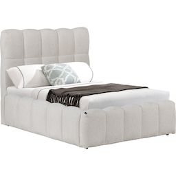 Lit double style bulle avec coffre de rangement en tissu Davos - Beige - 140 x 190 cm - bois - 24 lattes - Dimensions: 211 x 158 x 112 cm - Dimensions rangement: 191 x 141 x 23 cm.Lit de rangement Davos - Beige - 140 x 190 cmTransformez votre chambre avec le lit coffre > 140 x 190 cm, où éléganc