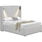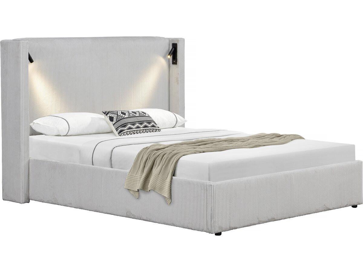 Lit double en velours côtelé avec coffre et lampe intégré Cortina - 140 x 190 cm- Beige