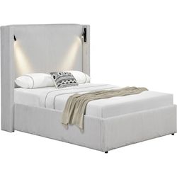 Lit coffre en velours côtelé multi fonction - Coffre, Lampes de lectures et prises USB intégrés - Dimensions 210 x 163 x 120 cm - Couleur beige.