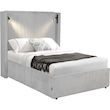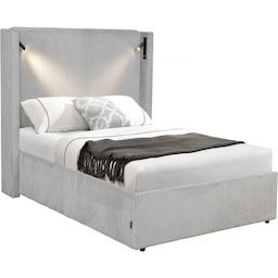 Lit double en velours côtelé avec coffre et lampe intégré Cortina - 140 x 190 cm - Gris