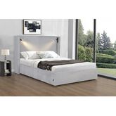 Lit coffre en velours côtelé multi fonction - Coffre, Lampes de lectures et prises USB intégrés - Dimensions 220 x 183 x 120 cm - Couleur beige.