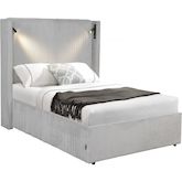 Lit double en velours côtelé avec coffre et lampe intégré Cortina - 160 x 200 cm - Gris