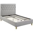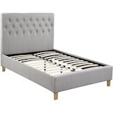 Lit Emmy 2 personnes - Beige - Dimensions lit : 219 x 167 x 102 cm - Dimensions pour matelas : 160 x 200 cm - Structure en bois - Pieds en bois - 100% polyester - Sommier à latte et tête de lit inclus.