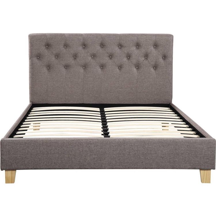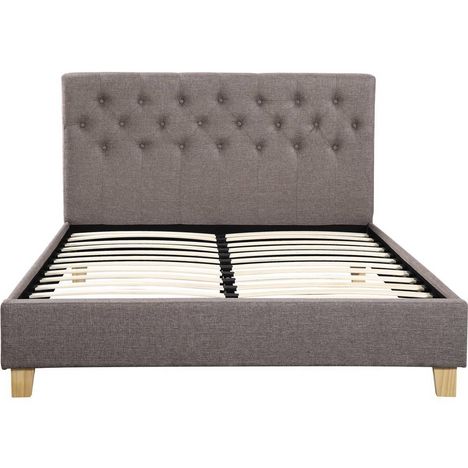 Lit Emmy 2 personnes - Taupe - Dimensions lit : 219 x 167 x 102 cm - Dimensions pour matelas : 160 x 200 cm - Structure en bois - Pieds en bois - 100% polyester - Sommier à latte et tête de lit inclus.