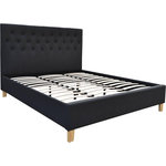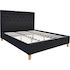 Lit Emmy 2 personnes - Gris foncé - Dimensions lit : 218 x 187 x 102 cm - Dimensions matelas : 180 x 200 cm - Structure en bois - Pieds en bois - 100% polyester - Sommier à latte et tête de lit inclus.Lit Emmy Avec son revêtement en tissu et ses lignes épurées, ce produit se distingue grâce à s