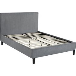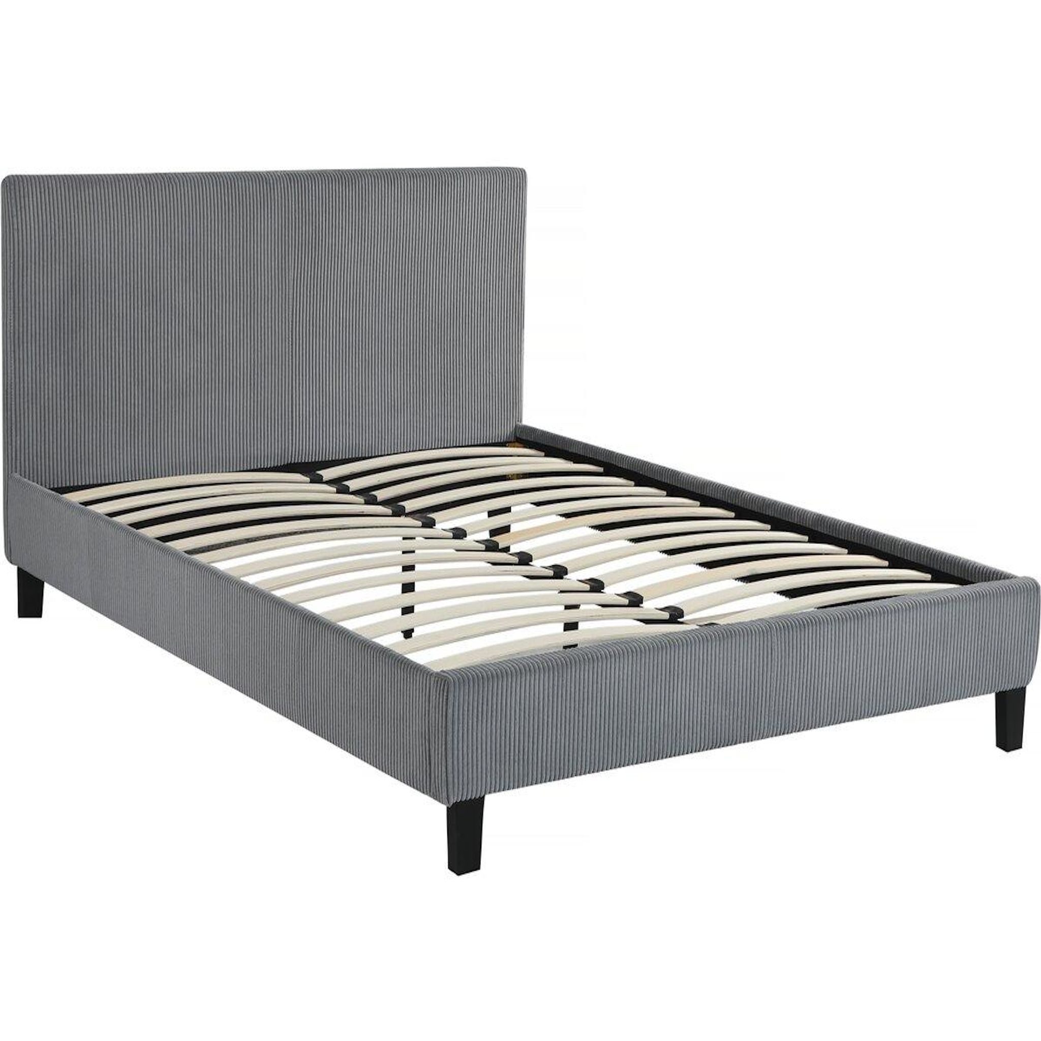 Lit en Velours Cotelé Ambre - 201 x 146 x 86 cm - Gris - Bois - Velours cotelé.