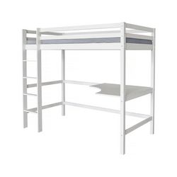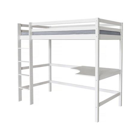 Lit mezzanine avec bureau - Structure : Bois de pin - Lit : 190 x 90 cm - Bureau : 93,5 x 93,5 x 1,8 cm- Blanc - Barrière de sécurité latéral.