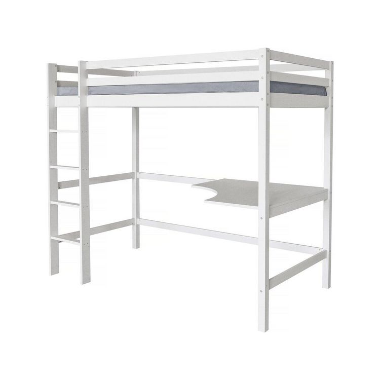 Descriptif : Lit mezzanine avec bureau - Structure : Bois de pin - Lit : 90 x 190 cm - Bureau : 93,5 x 93,5 x 1,8 cm- Blanc.