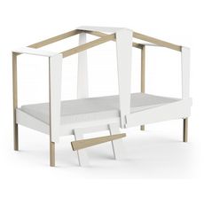 Lit enfant à plateforme Cabane - 1 place - Dimensions du couchage: 90 x 200 cm - Dimensions du lit : 114,5 x 212,9 x 152,2 cm - Bois - Blanc.