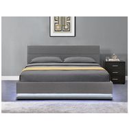 Lit avec LED Anastasia - Gris foncé - Dimensions matelas : 180 x 200 cm - Dimensions lit : 194 x 214 x 90.5 cm - - MDF + Bois - Lin - Tête de lit fournie - Coffre de rangement - Avec sommier à lattes - Matelas en option.