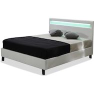 Lit LED Maria 2 personnes - Blanc - Fourni avec LED et sommier - Dimensions matelas : 140 x 190 cm (non fourni) - Fonction LED - Télécommande fournie pour changer la couleur de la lumière au gré de vos envies - 3 couleurs des LED : rouge, vert, bleu.