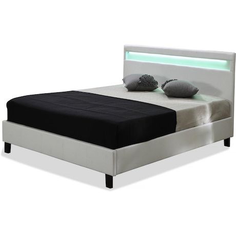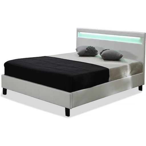 Lit LED Maria 2 personnes - Blanc - Fourni avec LED et sommier - Dimensions matelas : 140 x 190 cm (non fourni) - Fonction LED - Télécommande fournie pour changer la couleur de la lumière au gré de vos envies - 3 couleurs des LED : rouge, vert, bleu.Lit LED Maria Un lit design, élégant et de hau