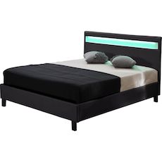 Lit LED Maria 2 personnes - Noir - Fourni avec LED et sommier - Dimensions matelas : 140 x 190 cm (non fourni) - Fonction LED - Télécommande fournie pour changer la couleur de la lumière au gré de vos envies - 3 couleurs des LED : rouge, vert, bleu.