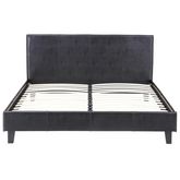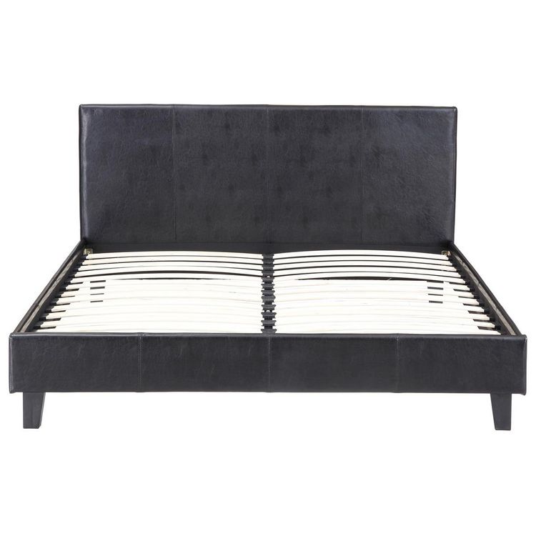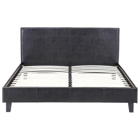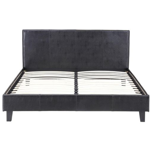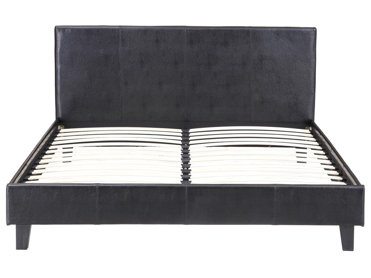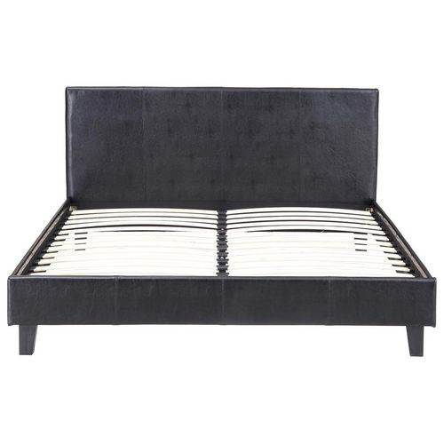 Lit Lina - 2 personnes - Noir - Dimensions lit : 203 x 148 x 90 cm - Dimensions matelas : 140 x 190 cm - Structure en contre plaqué - Pieds en bois - Recouvert de PVC - Sommier à lattes et tête de lit inclus.