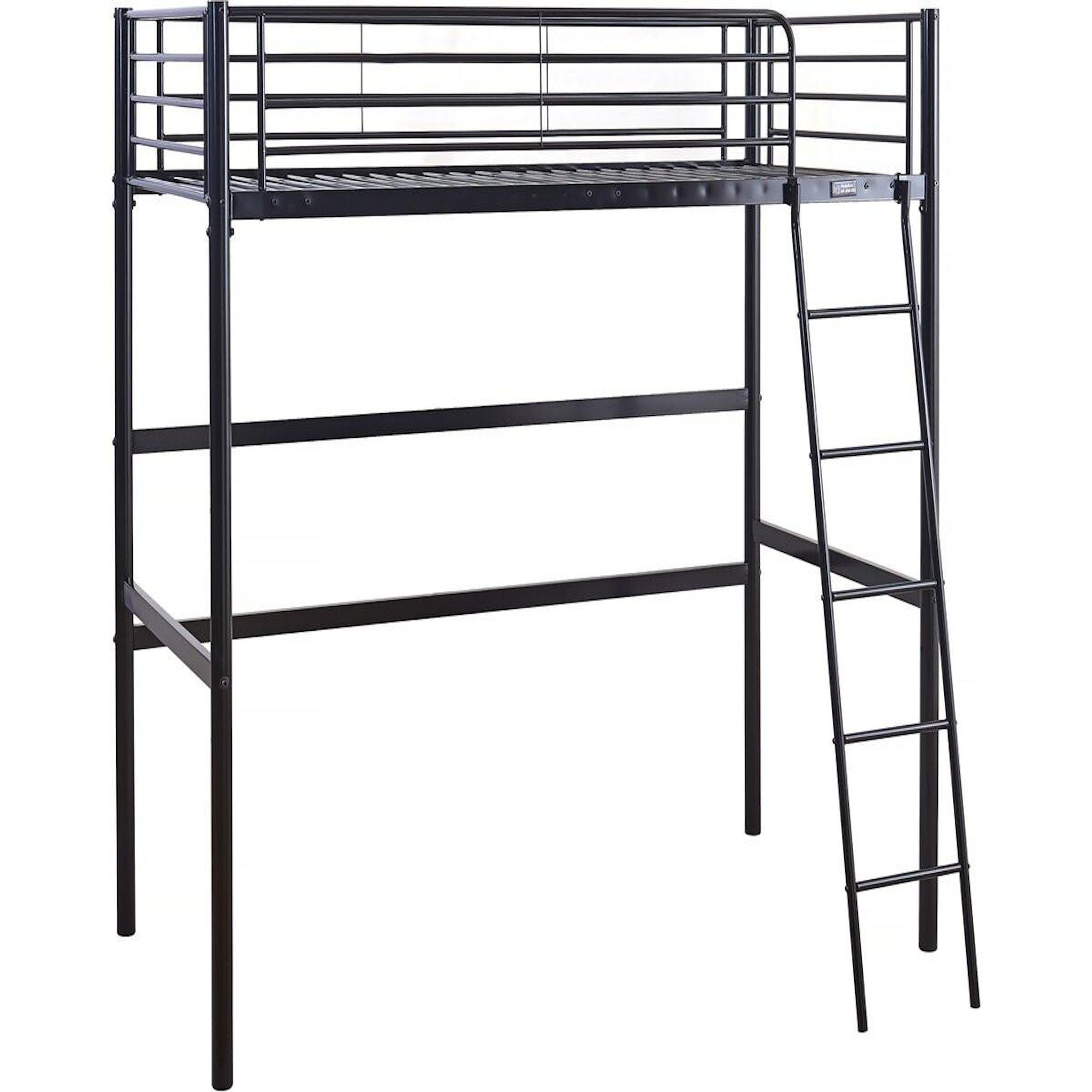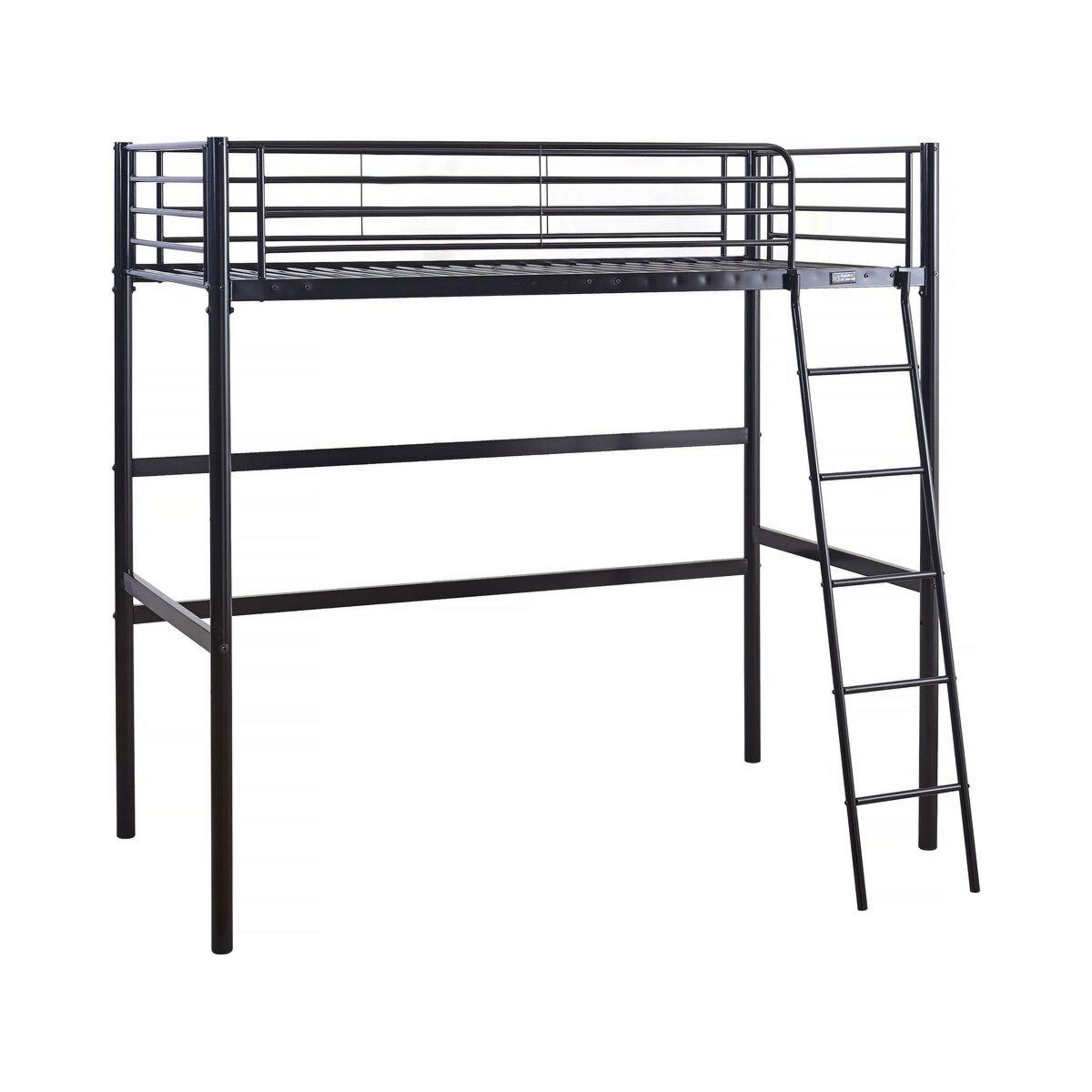 Lit superposé en métal Alora - Dimensions : 200 x 97 x 189 cm - Dimension sommier : 90 x 190 cm (matelas non inclus) - Poids : 33, 3 Kg - Noir.