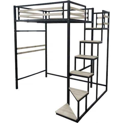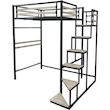 Lit mezzanine en métal avec escalier LENA - 140 x 190 cm - Noir