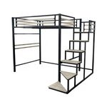 Lit mezzanine LENA avec escalier - 140 x 190 cm - Métal noir
