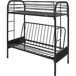 Le lit mezzanine Polo est entièrement conçu en acier afin de vous proposer un produit de plus en plus tendance. De plus, une telle structure confère solidité, robustesse, fiabilité... ce que vous apprécierez assurément ! Dès lors, il devient idéal voire indispensable à toute chambre - offrant 1 espace de couchage pouvant accueillir 1 personne et un 2nd espace de couchage pouvant accueillir jusqu'à 2 personnes - ainsi que la possibilité d'optimiser réellement l'espace occupé dans la pièce. Ainsi, il se pose comme un lit recherché et apprécié, notamment pour partager une chambre à coucher entre plusieurs personnes tout en souhaitant économiser de l'espace. Lit mezzanine Polo en acier - Dimensions matelas : 90 x 190 cm - Noir - Dimensions : 200 x 97 x 165 cm - Echelle fournie .Descriptif: 45 Lattes en acier inclues - Échelle en métal 3 marches inclues , Distance entre chaque marche : 26 cm - Barrière de sécurité pour le lit du haut - Taille recommandée de matelas : 90 x 190 cm (lit du haut) et 140 x 190 cm (lit du bas)