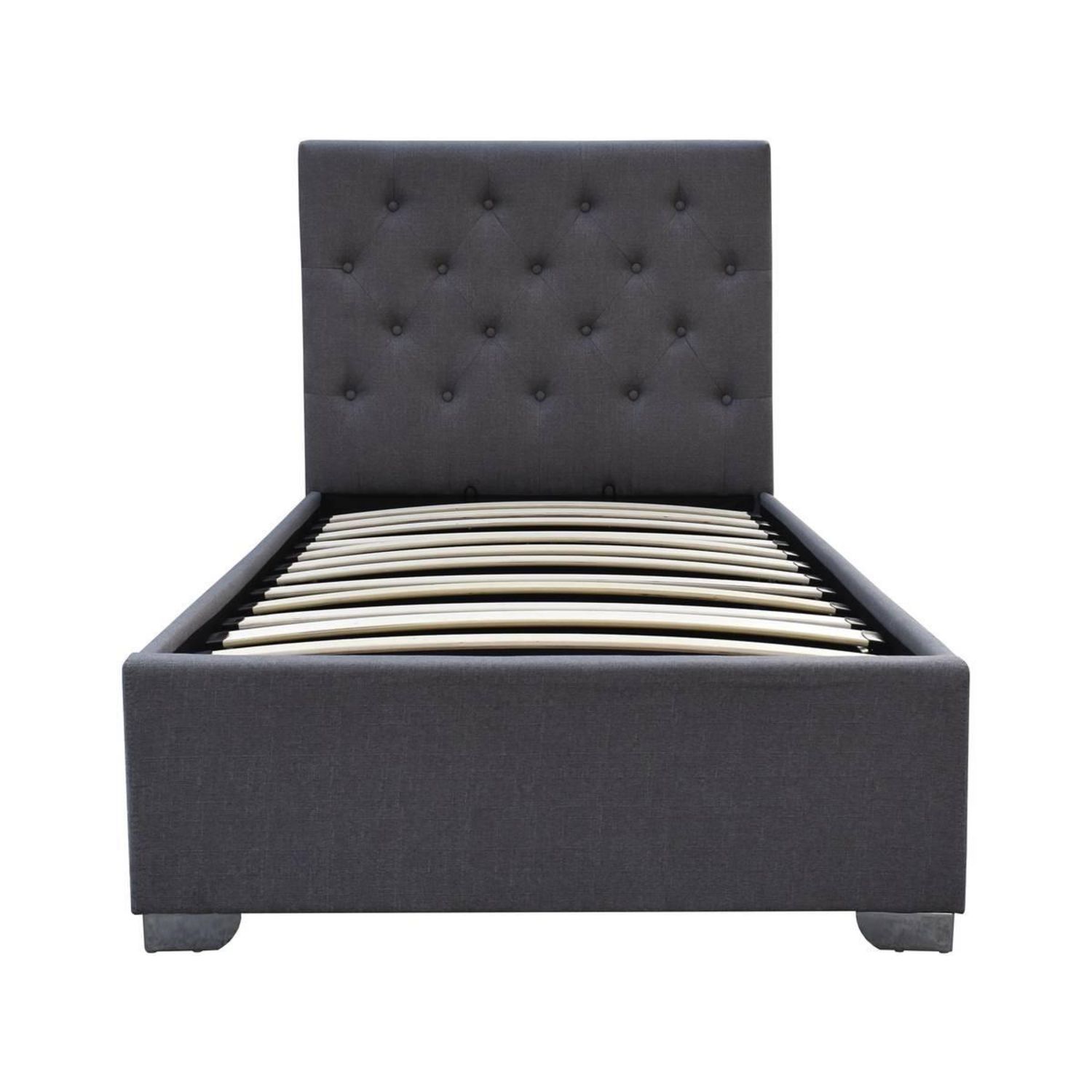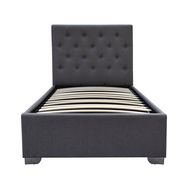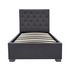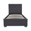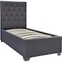 Lit simple avec coffre TINO - Dimensions du lit : 207 x 98 x 108 cm - Dimensions du matelas : 90 × 190 cm - Gris - Structure : cadre en bois (contreplaqué et bois dur) - Tête de lit et pied de lit en tissu - Avec sommier à lattes en peuplier (bois courbé) - Matelas non inclus.