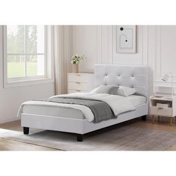 Lit simple Julia 1 personne - Blanc - Dimensions lit : 204 x 97 x 89 cm - Dimensions matelas : 90 x 190 cm - Tête de lit capitonnée - Sommier inclus - Finition brillante - En PVC.