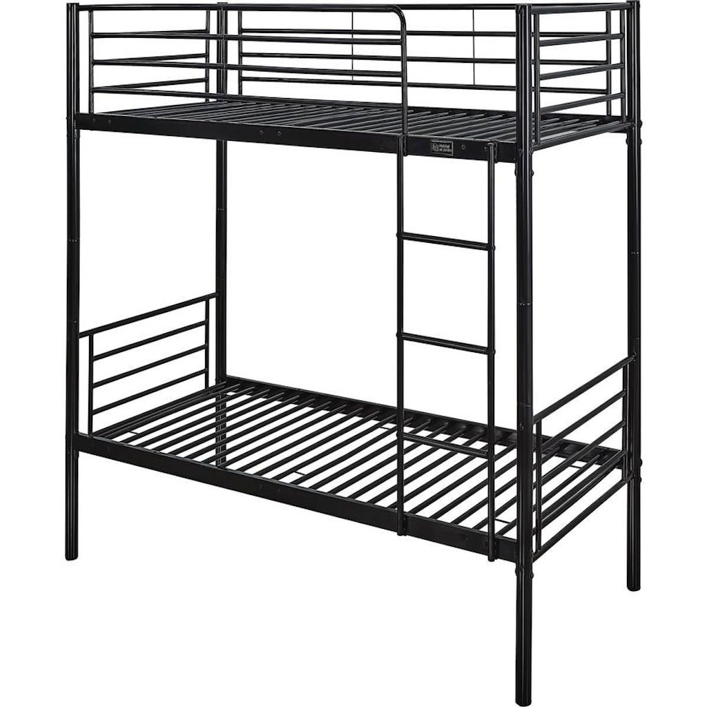 Le lit superposé Adam - 2x1 place - est entièrement conçu en métal afin de vous proposer un produit de plus en plus tendance. De plus, une telle structure confère solidité, robustesse, fiabilité... ce que vous apprécierez assurément ! Dès lors, il devient idéal voire indispensable à toute chambre, offrant 2 espaces de couchage ainsi que la possibilité d'optimiser réellement l'espace occupé dans la pièce. Ainsi, il se pose comme un lit recherché et apprécié, notamment pour partager une chambre à coucher entre plusieurs personnes tout en souhaitant économiser de l'espace. Lit superposé Adam en acier - 2 x 1 place - Noir - Dimensions : 200 x 97,5 x 165 cm - Echelle fournie .Matières: acier