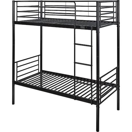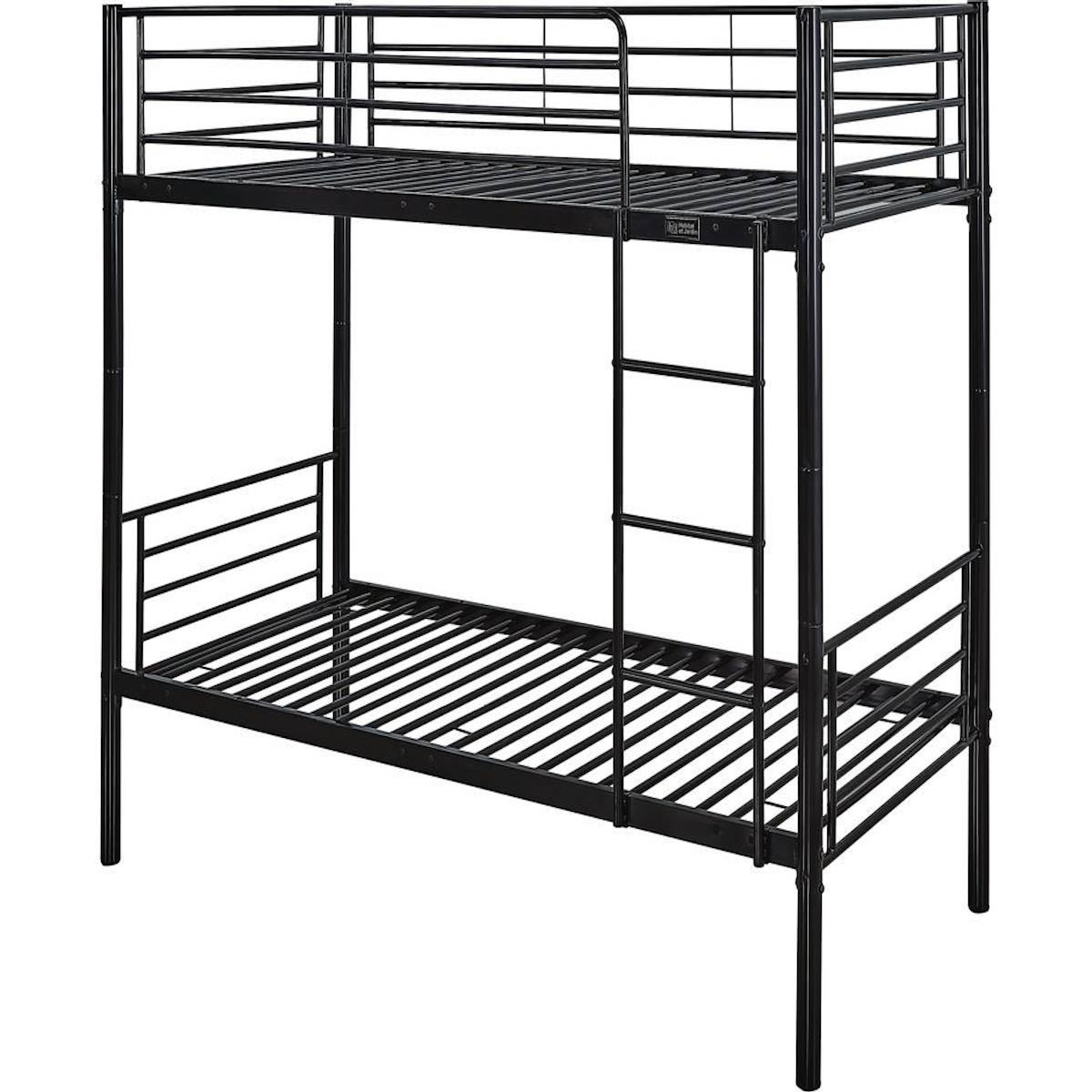 Lit superposé Adam en acier - 2 x 1 place - Noir - Dimensions : 200 x 97,5 x 165 cm - Echelle fournie.