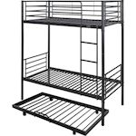 Lit superposé avec tiroir sommier Adam en acier - 3 x 1 place - Noir - Dimensions : 200 x 97,5 x 165 cm - Echelle fournie.Le lit superposé Adam – 2 x 1 place est entièrement conçu en métal pour offrir une structure moderne, robuste et durable. Grâce à sa conception renforcée, il assure stabilité,