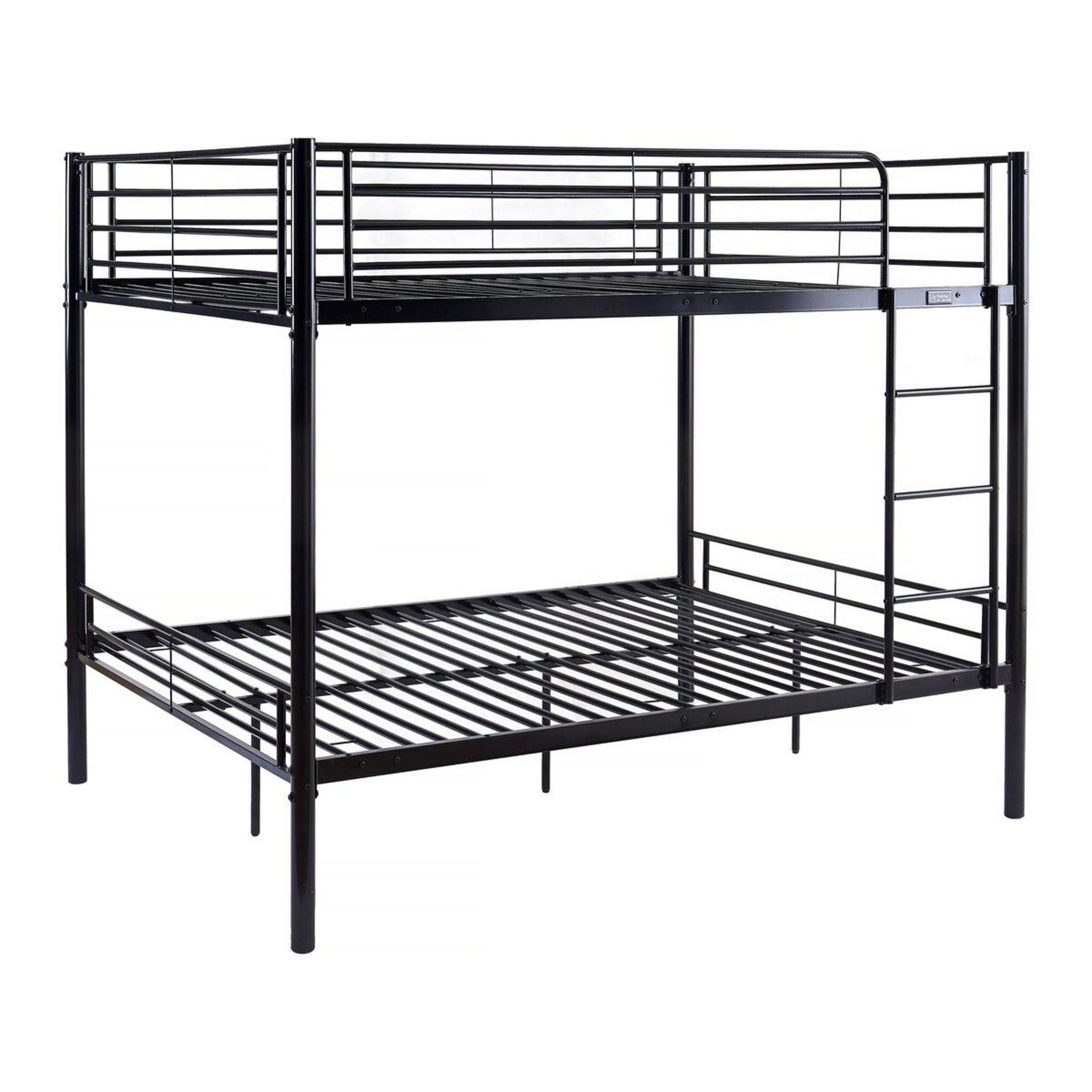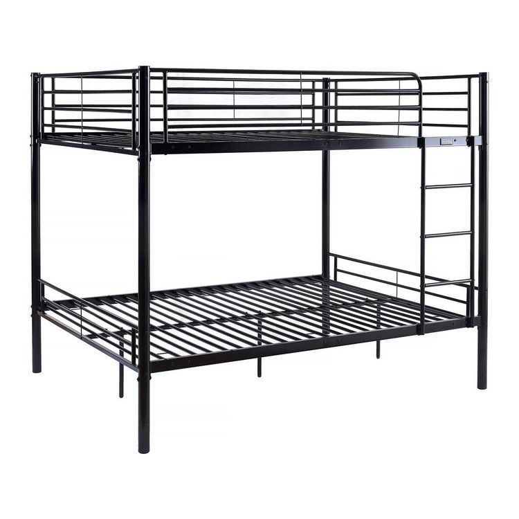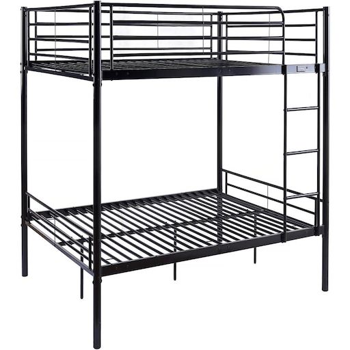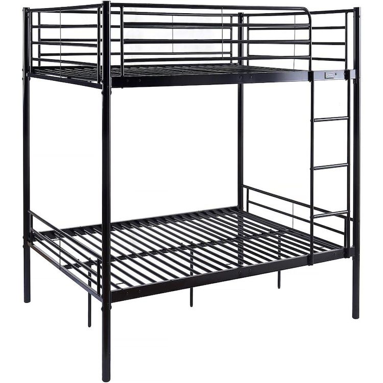 Lit double superposé mezzanine en métal Adam - Dimensions : 200 x 147,5 x 165 cm - Dimensions du matelas : 140 x 190 cm (matelas non inclus) - Distance entre les deux lits : 90 cm - Noir.