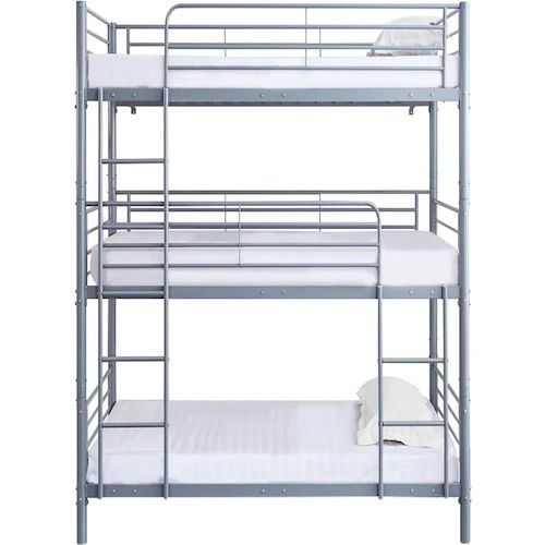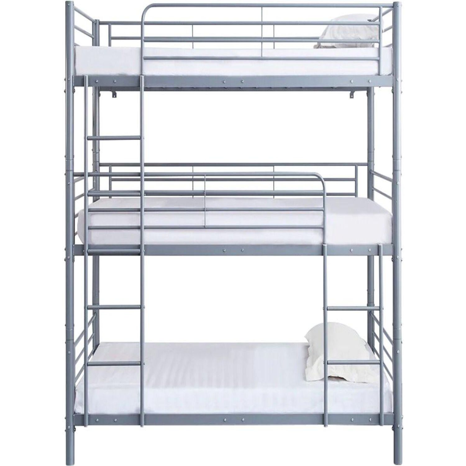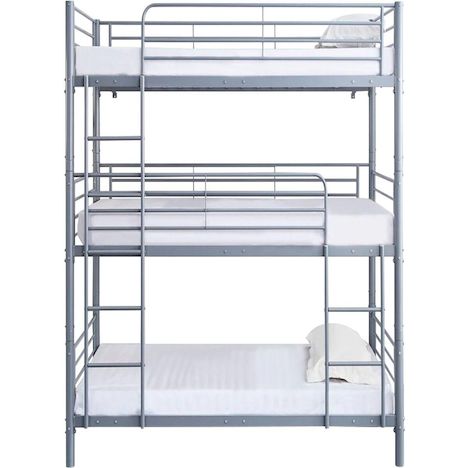 Lit superposé en métal triple HAVIN - 90 x 190 cm - Gris
