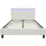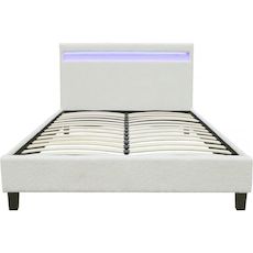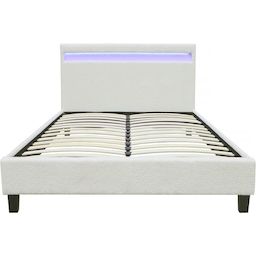 Lit tissu bouclette avec LED Maria 140x190cm - Crème
