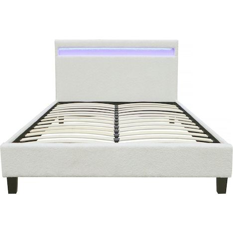 Lit en tissu bouclette Maria - 140 x 190 cm - LED intégré - - Structure en contreplaqué - Télécommande incluse..