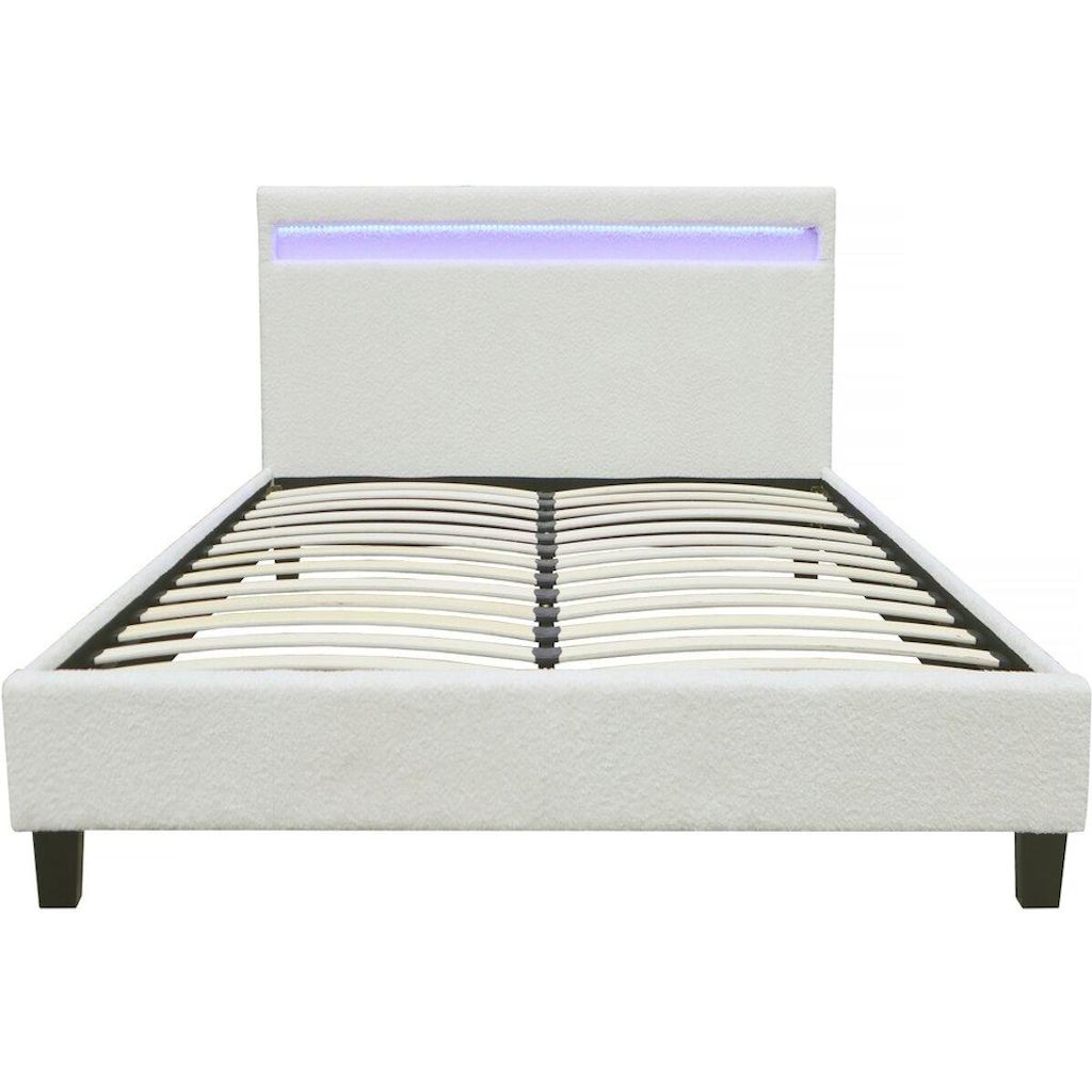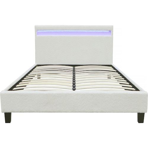 Lit en tissu bouclette avec LED - 140 x 190 cm - Crème