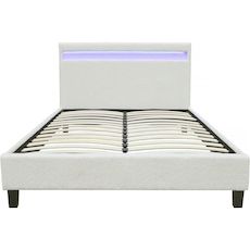 Descriptif : Lit en tissu bouclette Maria - 140 x 190 cm - LED intégré - - Structure en contreplaqué - Télécommande incluse.