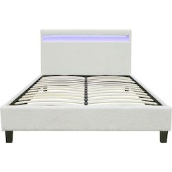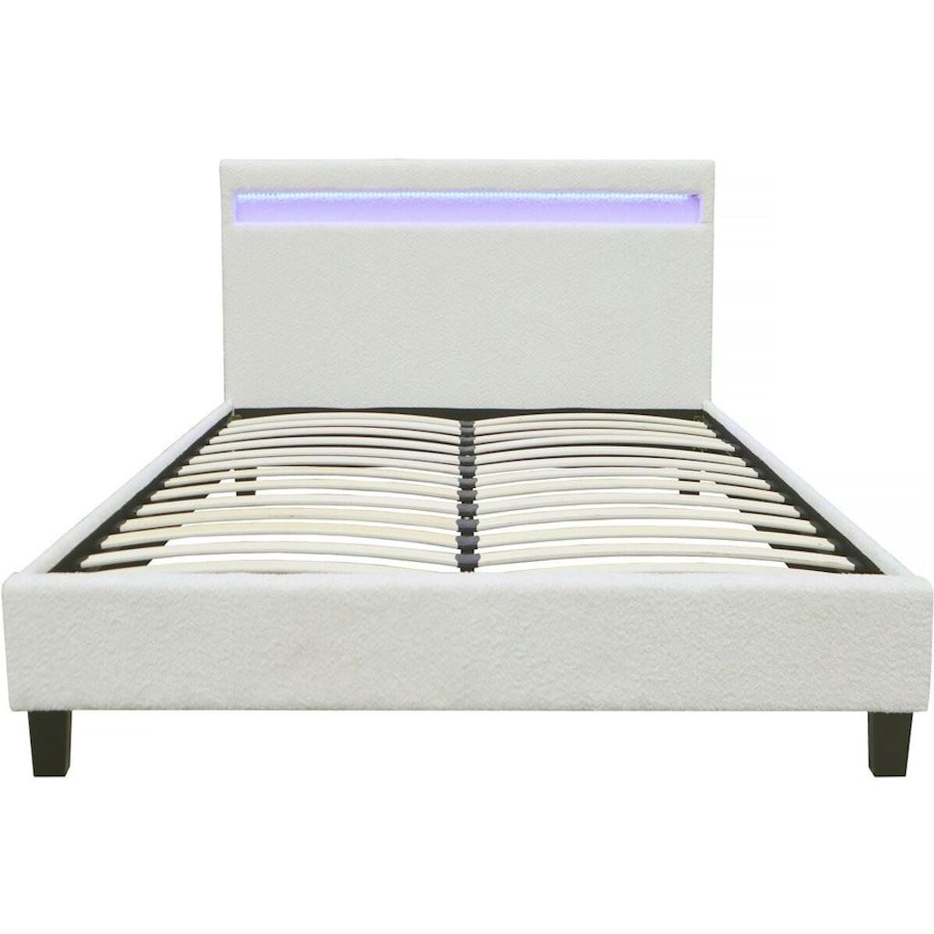 Lit tissu bouclette avec LED Maria 160 x 200 cm - Crème