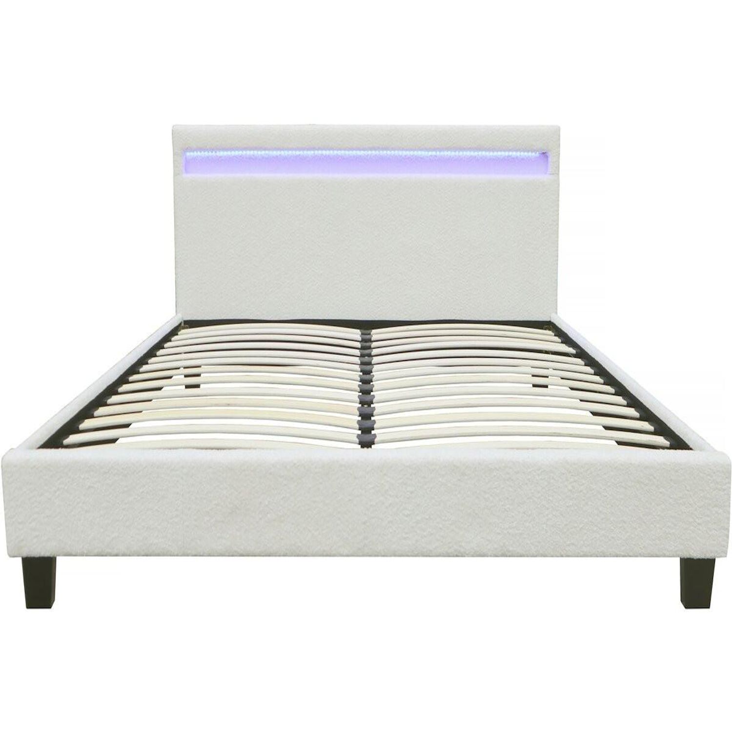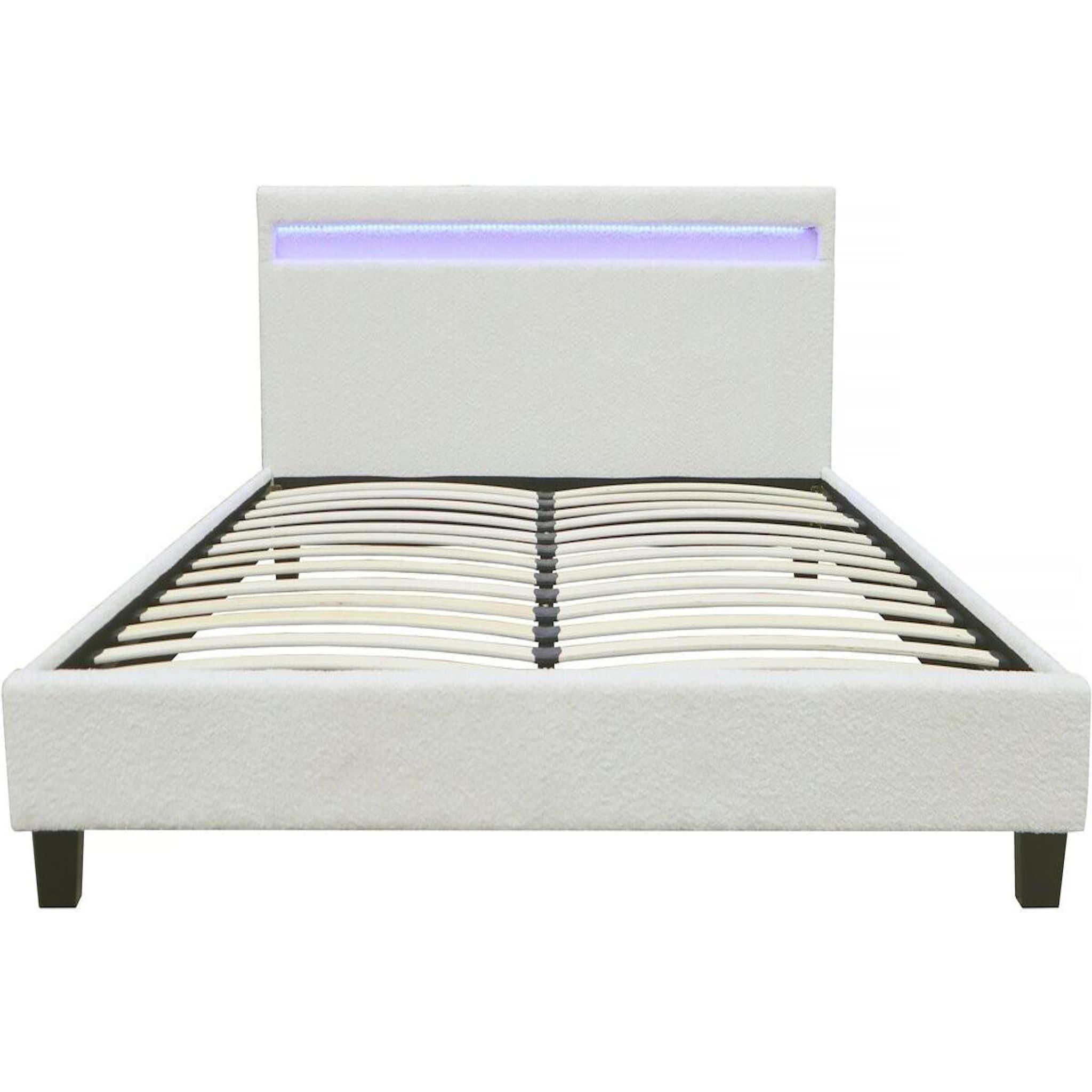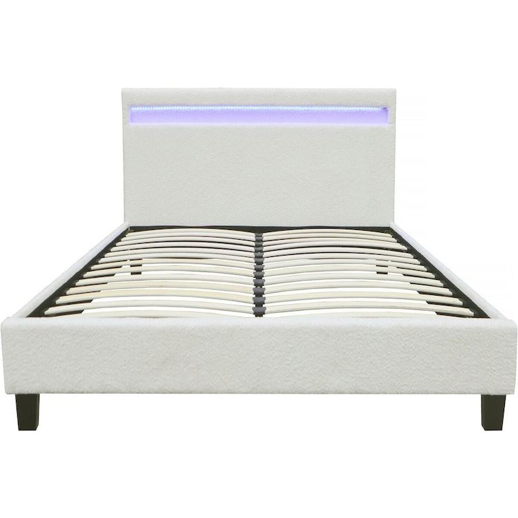Lit en tissu bouclette Maria - 160 x 200 cm - LED intégré - - Structure en contreplaqué - Télécommande incluse..