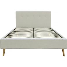 Lit en laine bouclée pour 2 personnes Némo - Crème - Dimensions lit : 167 x 217 x 89 - Dimensions matelas : 160 x 200 cm - Tête de lit capitonnée - Sommier inclus - Finition bouclettes.Lit en tissu bouclettes Nemo - 160 x 200 cm - Crème Ce lit double est un ajout parfait pour toute chambre à c