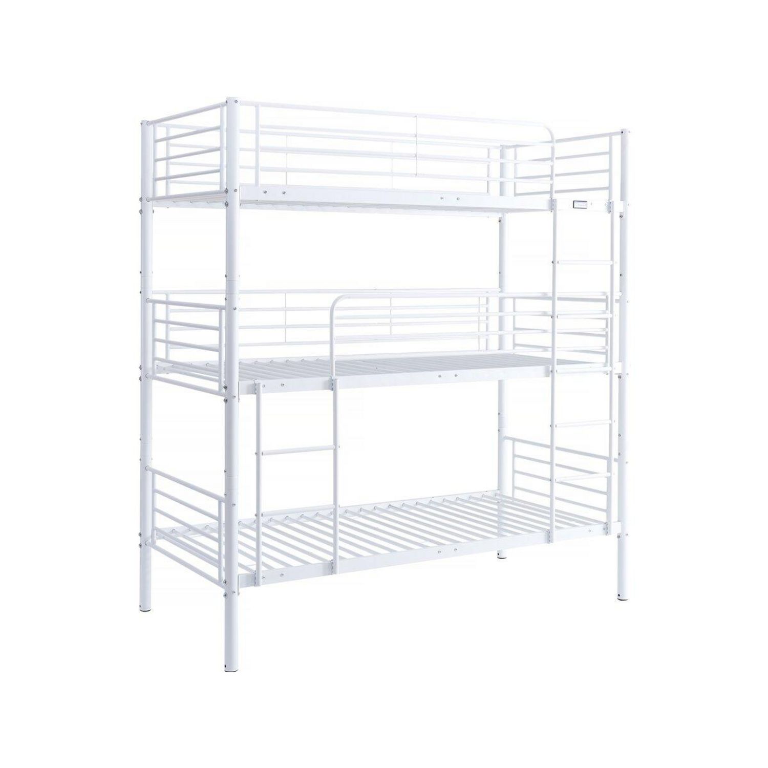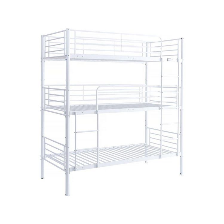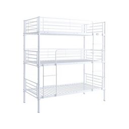 Lit superposé en métal 3 niveaux Havin - Dimension : : 200 x 97,5 x 215 cm - 3 couchages - Blanc.