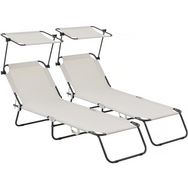 Lot de 2 bain de soleil pliable Lazy - Avec pare soleil - Beige